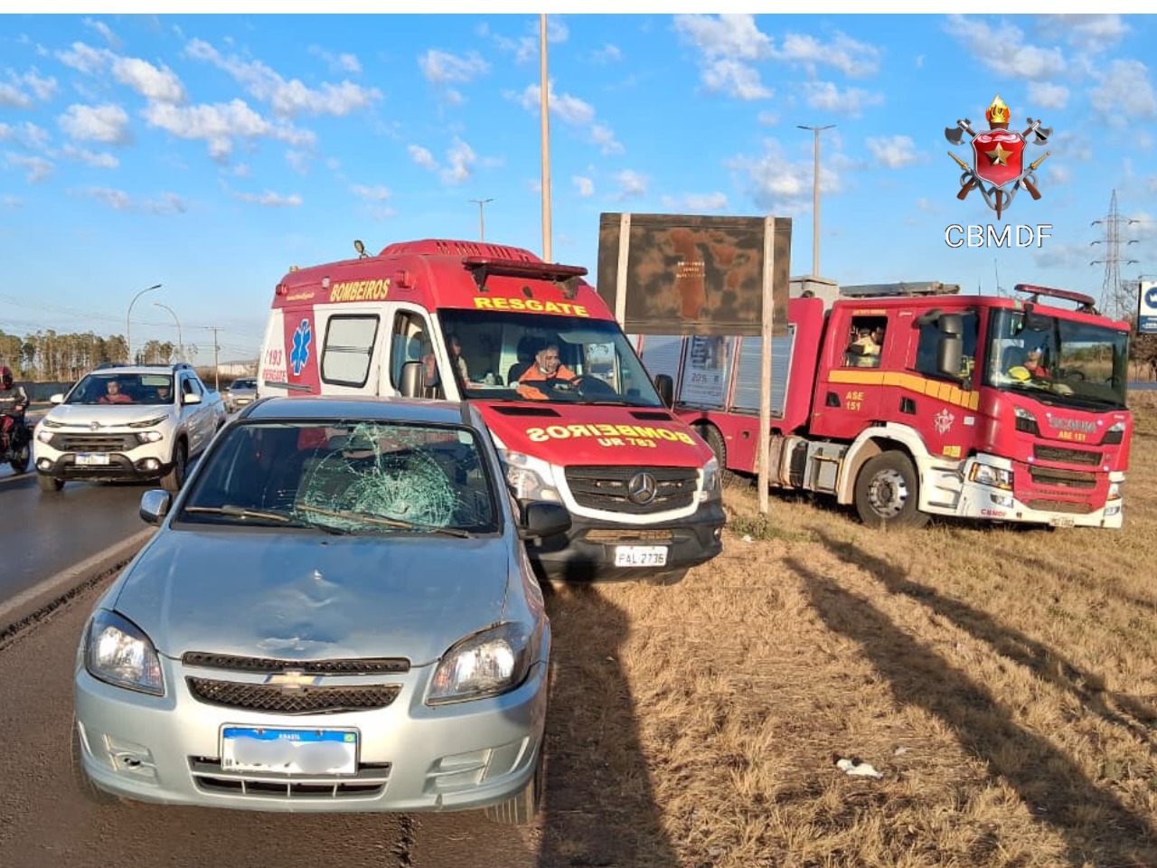 No local, os bombeiros encontraram um GM Celta prata, conduzido por W.M.S., de 45 anos, que não sofreu ferimentos. A vítima, A.C.S.B., de 21 anos, apresentava corte no supercílio direito e escoriações na perna direita. Ela estava consciente e orientada e foi encaminhada ao Instituto Hospital de Base de Brasília (IHBB) para atendimento médico.